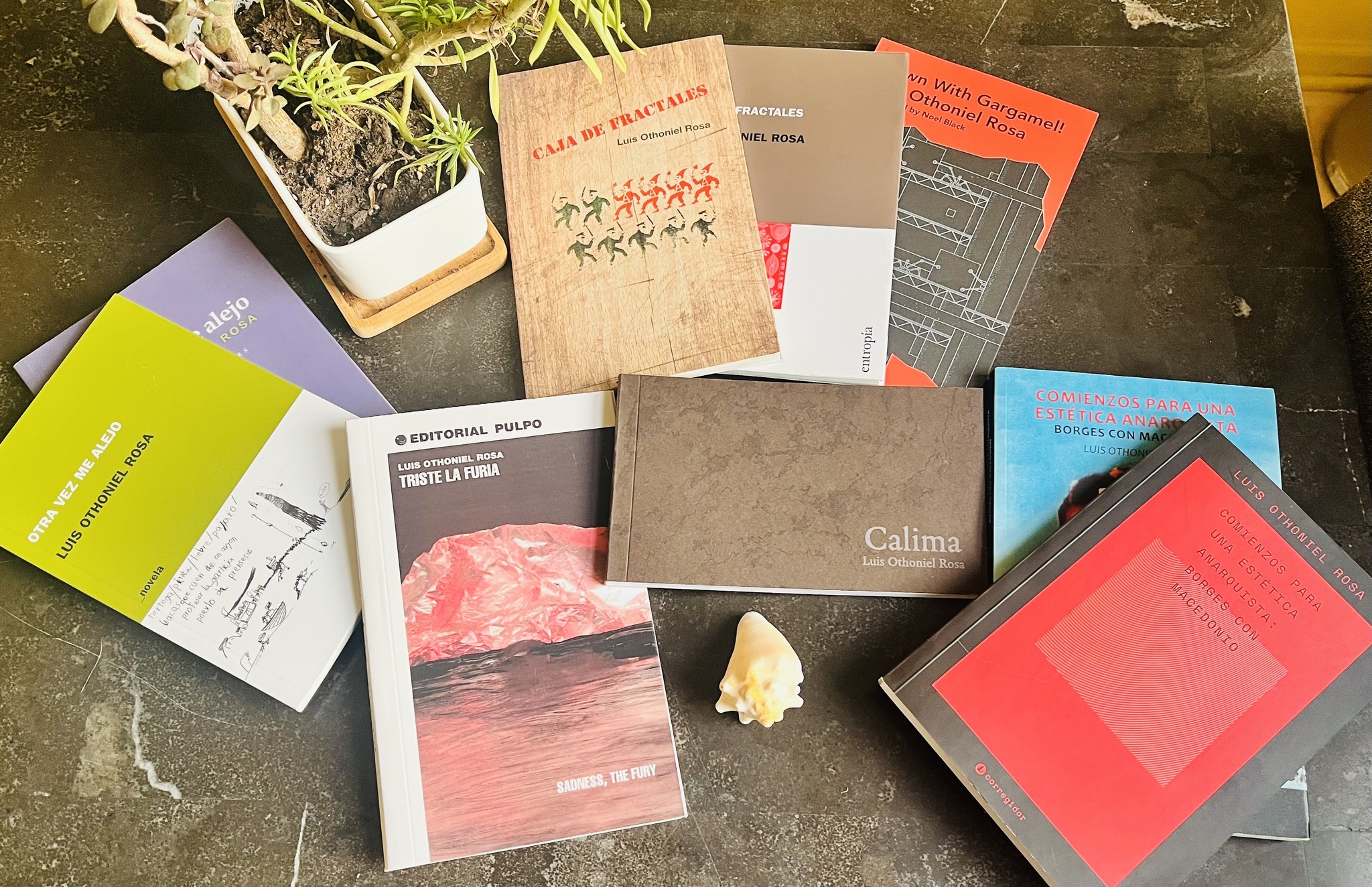 Luis Othoniel Rosa(Bayamón, Puerto Rico, in 1985) studied at the University of Puerto Rico and earned his Ph.D. at Princeton. His next book is a long utopian novel titled El gato en el remolino / Animal Spiral Scotland: Charco Press, Summer 2026. He is the author of the short novels Otra vez me alejo (2012), Caja de fractales (2017), and Down with Gargamel! (2020), of the bilingual collection of poems, Triste la furia / Sadness, the Fury (2025), of the bilingual artisanal book, Calima (2023), and of the scholarly book, Comienzos para una estética anarquista: Borges con Macedonio (2016; 2020). He is the founding and current head editor of El Roommate: Colectivo de Lectores and a founding member of The LOUDREADERS Trade School. He is the Associate Professor of Spanish and Ethnic Studies at the University of Nebraska.