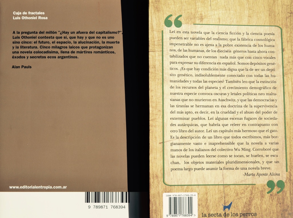 “Leí en esta novela que la ciencia ficción y la ciencia poesía pueden ser variables del realismo; que la fábrica cosmológica impenetrable no es ajena a la pobre existencia de los humanos, de las humanas, de los dieciséis géneros hasta ahora contabilizados que no cuentan nada más que con cinco vocales para expresar su diferencia en español. Somos depósitos genéticos. ¿Es que hay condición más digna que la de ser un depósito genético, indisolublemente conectado con todas las humanidades y todas las especies? También leo que la extinción de los recursos del planeta y el crecimiento demográfico de nuestra especie convoca oscuras y letales políticas neo maltusianas que no murieron en Auschwitz, y que las democracias y las tiranías se hermanan en esa doctrina de la supervivencia del más apto, es decir, en la crueldad y el abuso del poder de exterminar pueblos. (Leí algunas escenas fugaces de sociedades autárquicas, que habría que releer en contrapunto con otro libro del autor, Comienzo para una estética anarquista: Borges con Macedonio, Chile, Cuarto Propio, 2016). Leí un capítulo más hermoso que el gato. Es la descripción de un libro que todos escribimos, más borgianamente vasto e inaprehensible que la novela a varias manos de los italianos del colectivo Wu Ming. Corroboré que las novelas pueden leerse como se tocan, se huelen, se escuchan, los objetos materiales pluridimensionales, y que un poema largo puede asumir la forma de una novela breve.” -Marta Aponte Alsina