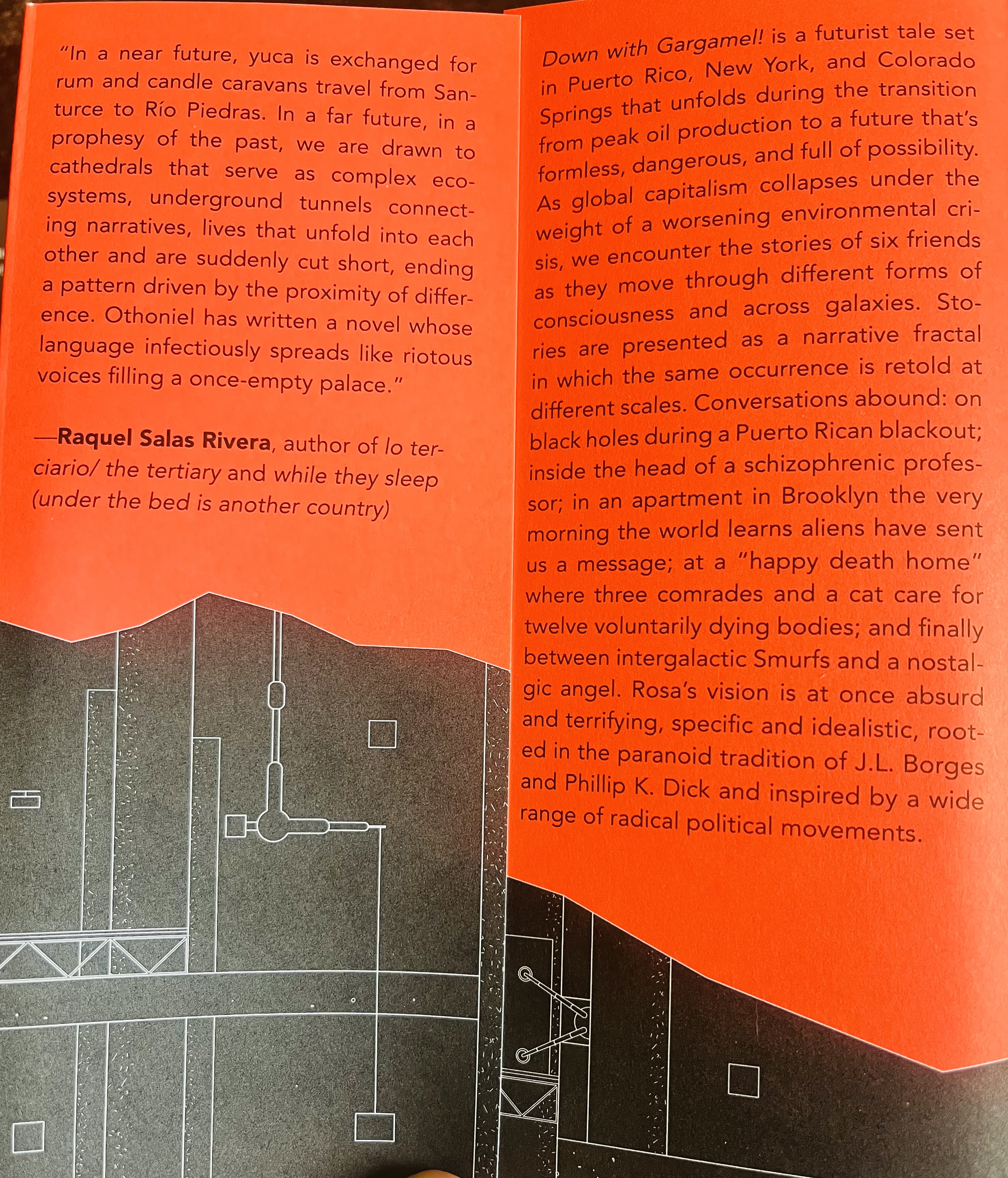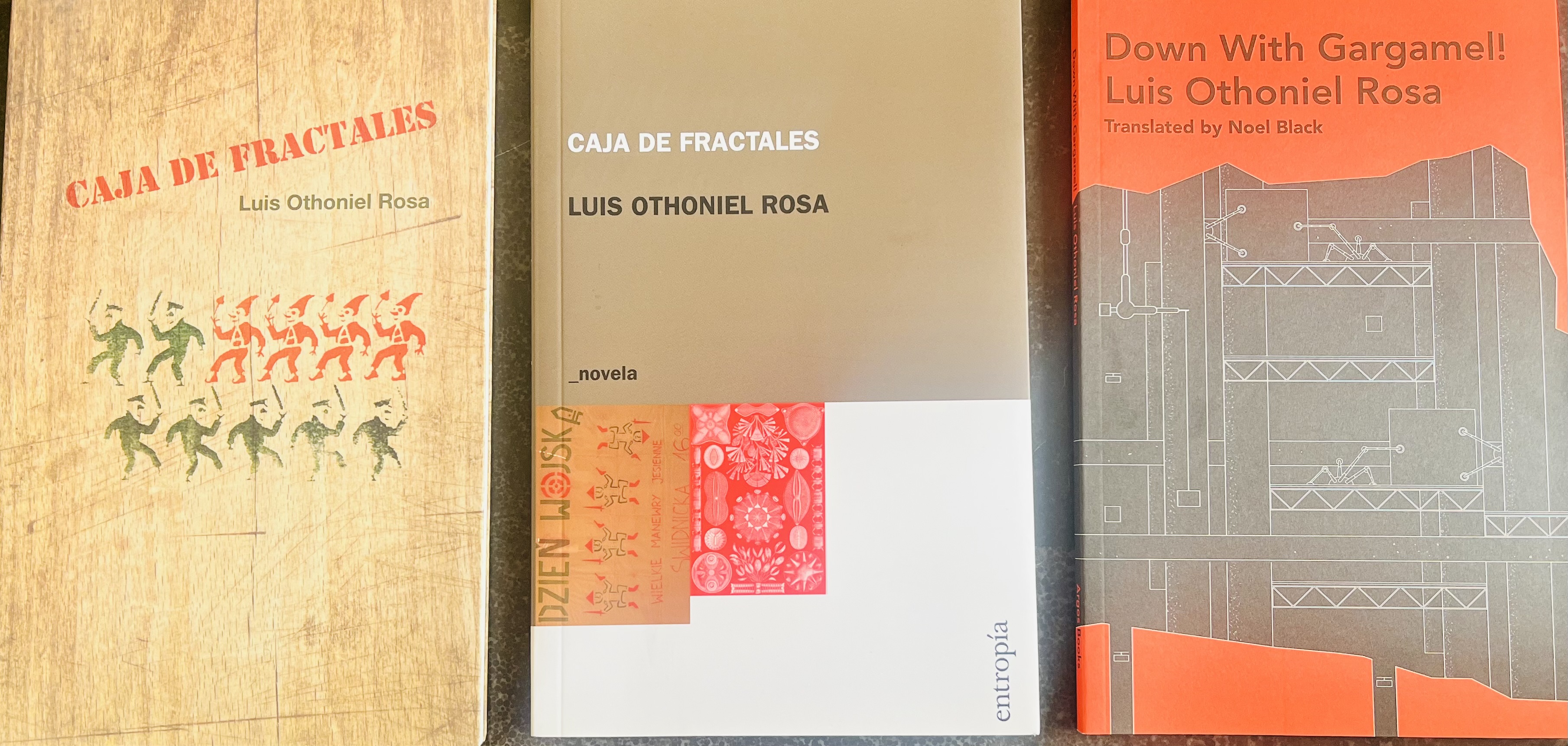 Luis Othoniel Rosa. Caja de fractales. Buenos Aires: Entropía, 2017/ Puerto Rico: La Secta de los Perros 2018. Translated by Noel Black as Down with Gargamel! USA: Argos Books, 2020